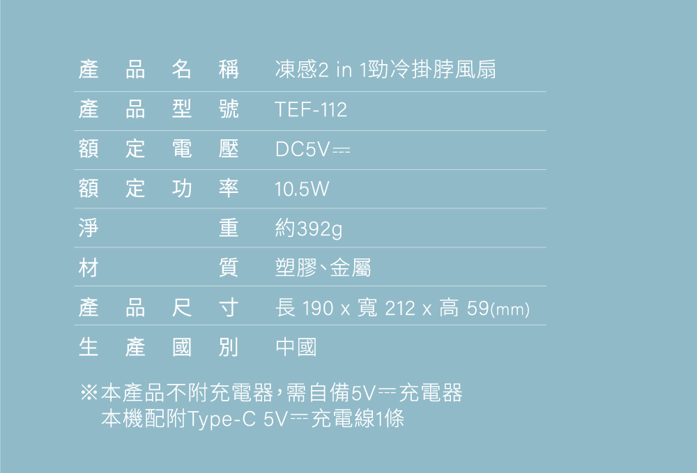 【新品上市】tokuyo 凍感2 in 1勁冷掛脖風扇 TEF-112