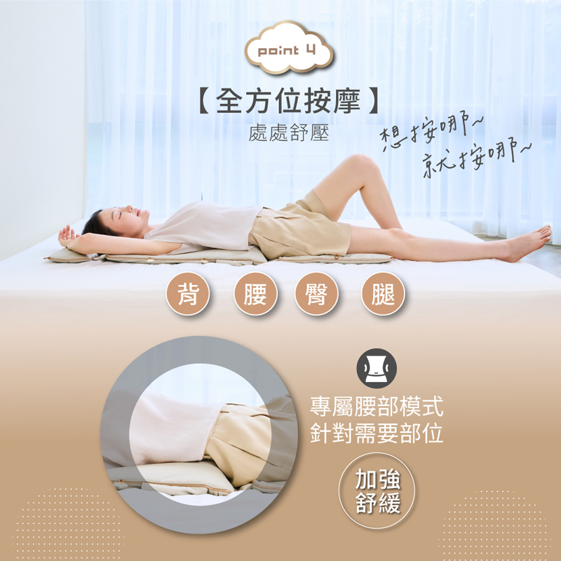 平躺用不錯。說明書寫平躺體重不能超過80公斤。平躺連續一小時會過熱保護斷電一小時。兩個按摩頭是條狀的像螺旋槳般旋轉,平躺的話會把兩側肩頰骨向外撥開有點不舒服。按摩軌道長度58公分