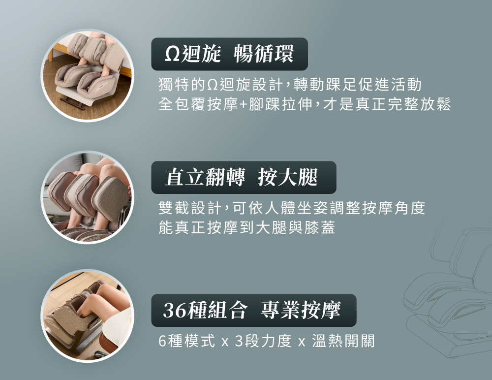• 全包覆按摩+腳踝拉伸