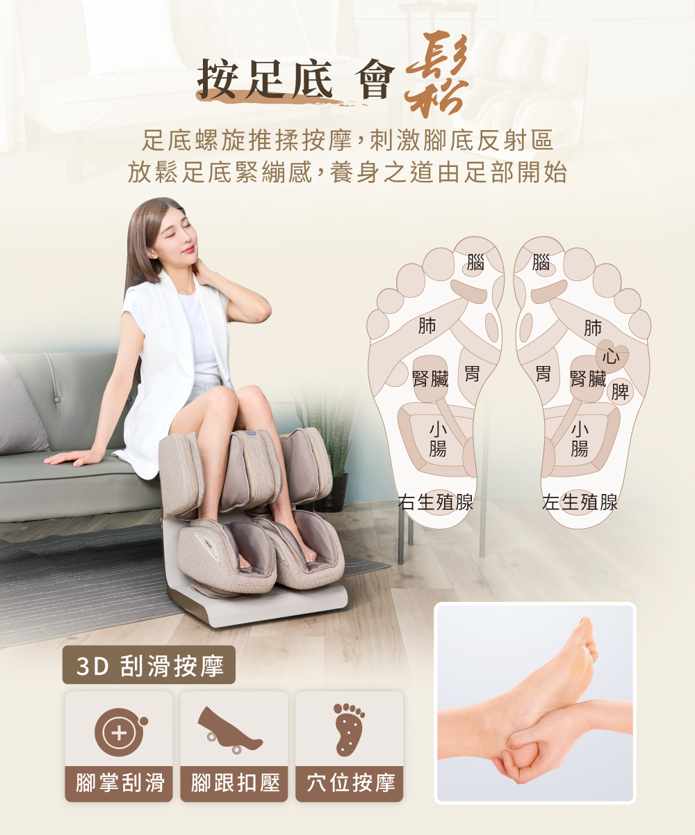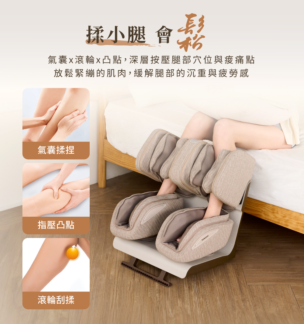• 按足底會鬆-螺旋推揉按摩揉小腿會鬆-氣囊x滾輪x凸點