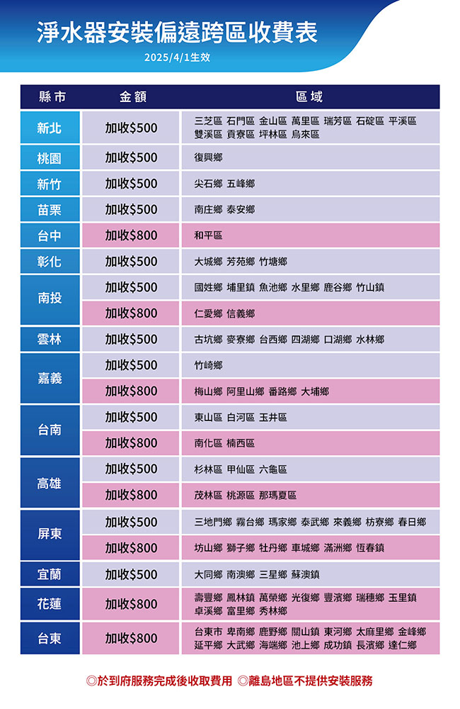 ◆偏遠地區安裝將酌收費用,請參考偏遠地區收費表。