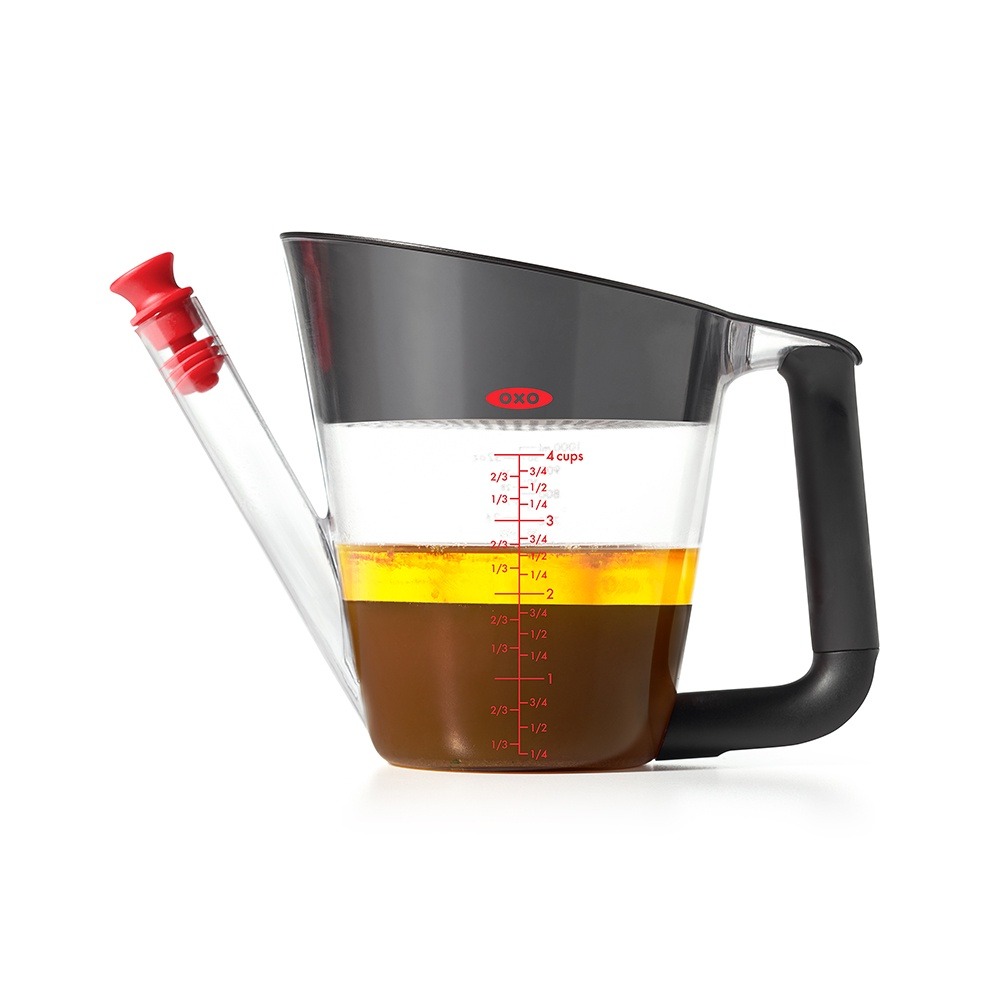 #OXO #好輕鬆 #油切神器 -1000ml 010331 OXO-010331 ◆清爽系食補必備 ◆輕鬆分離湯汁及浮油 ◆耐高溫塑料材質不含BPA ◆矽膠塞嘴避免油脂灌入壺嘴 商品特色 ◆超強油切神器可輕鬆分離湯汁及浮油,還你清爽無負擔的湯品。 ◆倒入湯汁,靜置一分鐘,等油水分離後透過特殊壺嘴倒出即可得到清澈無油的湯汁,清爽系食補必備,雞湯滷肉不再油膩膩。 ◆濾蓋可分離湯汁與食材。 ◆耐高溫塑料材質,不含BPA安心使用。 ◆矽膠塞嘴避免油脂灌入壺嘴。