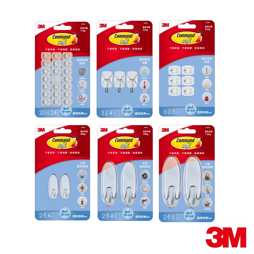 3M 無痕 透明掛鉤(多種款式可選)