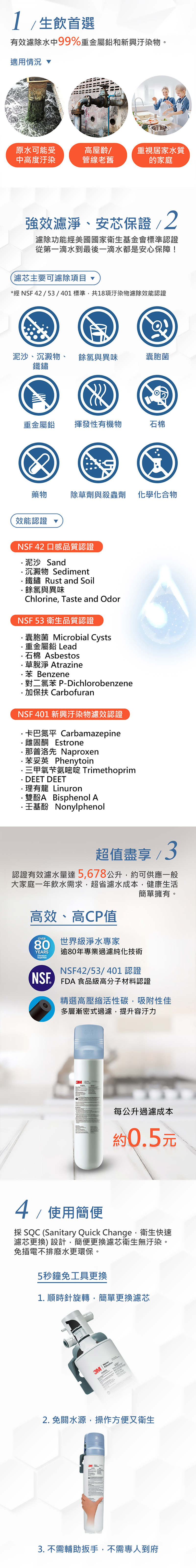 ◆保養便利:SQC快拆設計,更換濾芯僅需5秒鐘。