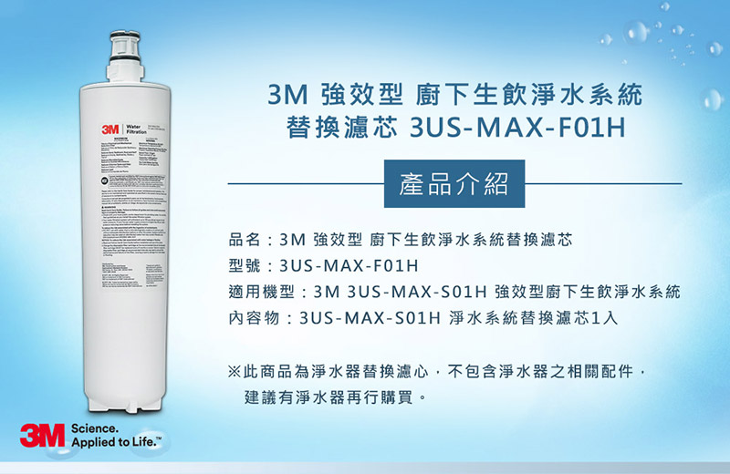 3M 3US-MAX-F01H 強效型廚下生飲淨水濾芯