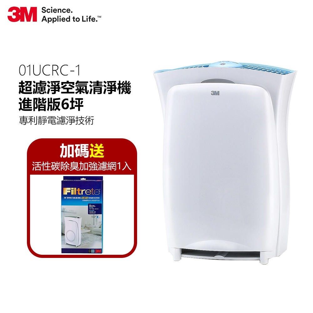 3M 淨呼吸超濾淨進階版6坪空氣清淨機-適用 3-7.5坪+原廠除臭濾網超值組 ◆台灣製造 ◆專利靜電濾淨技術,有效濾除過敏原 ◆高效活性碳濾網,有效降低異味 ◆負離子裝置,空氣更清新 ◆貼心濾網更換指示提醒 ◆三段風速與多段定時 3M 淨呼吸超濾淨型空氣清淨機-進階版(適用至7.5坪) ◆極淨:專利靜電濾淨,能徹底捕捉 99.9%以上小於0.1微米的病菌及過敏原 ◆除臭:搭配高效活性碳濾網,有效降低異味 ◆清新:負離子裝置,空氣更清新 ◆極靜:低速運轉35分貝,使用好安靜 ◆智慧:智慧型雙重濾網更換指示、多段定時及三段風速設定 ◆安心:台灣製造,品質保證最安心 ★本商品一經拆封使用,除產品瑕疵,恕無法辦理退貨★ ★空氣清淨機不同於大型家電(如冷氣、冰箱等)屬高能耗電器,不同能效分級對一般情況使用之耗電量影響不大。(舉例:能源效率分別為五級與一級的2台清淨機,CADR同為120CFM,若每天開8小時最高速,一天電費差不到2元)★ ◆型號:CHIMSPD-01UCRC-1 ◆機身尺寸:寬353 x 高473 x 深176 mm ◆包裝尺寸:寬394 x 高524 x 深220 mm ◆機器重量:4.05 kg ◆最佳適用坪數:6 坪 (依實際環境狀況可使用最大坪數7.5坪) ◆潔淨風量值:CADR 90CFM (換氣次數3-6次) ◆CASR值:2.73cmm ◆適用電壓:110V/60Hz ◆消耗功率:42W ◆能源效率值:0.082cmm/W ◆能源效率等級:第5級 ◆待機功率:0.97W ◆替換濾網型號:CHIMSPD-02UCF/CHIMSPD-02UCF-CA(內含活性碳) ◆國際條碼:4710367132851 ◆產地:台灣 ◆BSMI:R31320 ◆保固:保證書原廠保固1年,客服專線:0800-212-171 ◆規格配件以原廠公佈及實機為準 ◆圖片顏色以實機為準