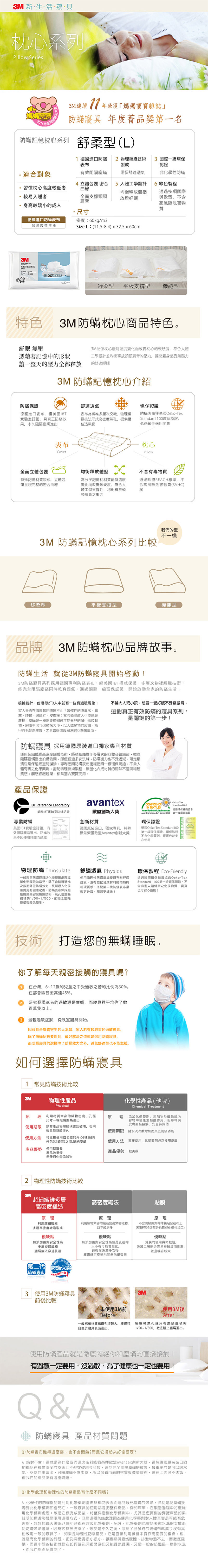 3M 新絲舒眠防蹣記憶枕-舒柔型(L)