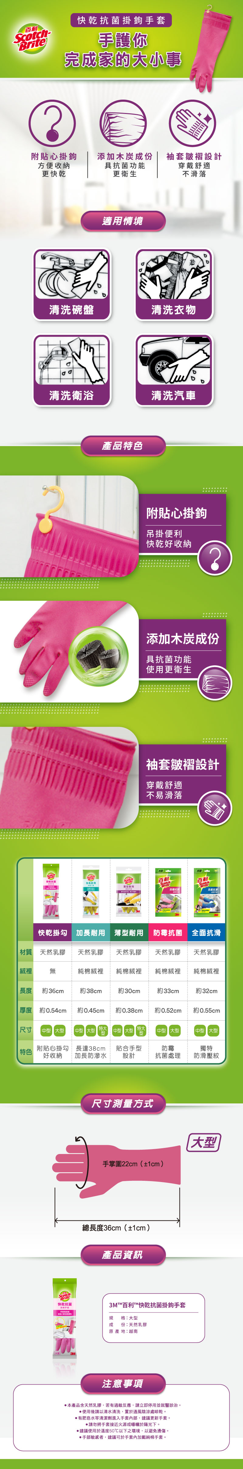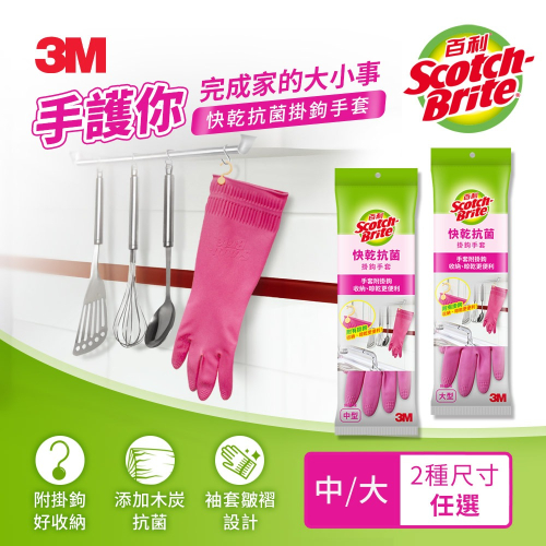 3M 百利 快乾抗菌掛鉤手套(中型.大型可選)