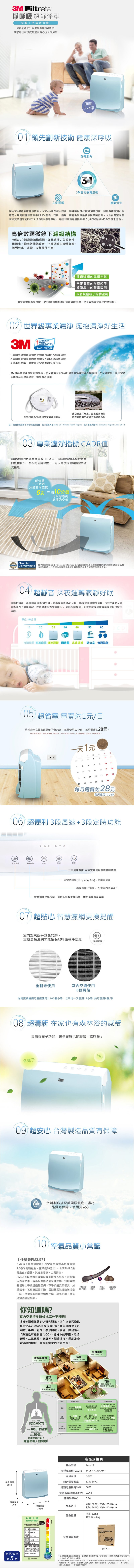 3M 超舒淨6坪負離子空氣清淨機FA-M12 -舒服藍 適用3-7坪 7100109816 ◆適用3~7坪空間 ◆3M獨特靜電濾網濾淨技術 ◆負離子清淨功能,提升濾淨效果 ◆三段風速選擇,三段定時設定 ◆智慧濾網更換指示,貼心提醒更換時間 ◆台灣製造,品質有保障 3M 淨呼吸超舒淨型空氣清淨機 FA-M12 ◆兼具時尚工藝與優異性能的全新機種,流線造型,升級進氣循環設計搭配3M獨家研發的靜電空氣濾網,讓您一次擁有完備功能 ◆採用3M獨特靜電濾淨技術,以3M發明的不織布核心技術,與多項技術平台交錯運用。特殊製程以BMF微織熔噴技術,超細纖維施加正負電荷,最高能濾除空氣中 99.9%塵埃、花粉、塵蹣、寵物毛屑等過敏原與帶菌微粒,以及台灣室內空氣品質法規定的PM2.5(2.5微米懸浮微粒),甚至可高效過濾比PM2.5還小800倍的PM0.003微米微粒 ◆潔淨風量值(CADR):84CFM,優異濾淨效能,最佳適用坪數:6坪 (依實際環境狀況可使用3~7坪之範圍) ◆消耗功率在最高速運轉下僅36W,每天使用12小時,每月電費不到28元 (以非營業用電,每月家庭用電120度電以下電費試算) ◆在最小建議使用坪數下,快速地每10分鐘驅動室內空氣循環一次 ◆負離子清淨功能,提升濾淨效果 ◆三段風速選擇,可依實際使用環境隨時調整 ◆三段定時設定(1hr / 4hr / 8hr),使用更便利 ◆智慧濾網更換指示,可貼心提醒更換時間,維持最佳濾淨效率 ◆內附更換濾網可連續使用2,160個小時,以平均一天使用12小時,約可使用6個月 ◆在濾網及風扇馬達作了最佳調配,在超強濾淨力的運作下,依然保持靜音 ◆台灣製造,品質有保障 ★本商品一經拆封使用,除產品本身瑕疵,恕無法辦理退貨★ ★空氣清淨機不同於大型家電(如冷氣、冰箱等)屬高能耗電器,不同能效分級對一般情況使用之耗電量影響不大。(舉例:能源效率分別為五級與一級的2台清淨機,CADR同為120CFM,若每天開8小時最高速,一天電費差不到2元)★ ◆型號:FA-M12 ◆適用坪數:3~7坪 ◆額定電壓/頻率:110V/60HZ ◆消耗功率:36 W ◆潔淨風量值 (CADR):84 CFM ◆CASR值:2.31cmm ◆能源效率值:0.068cmm/W ◆能源效率等級:第5級 ◆待機功率:0.26W ◆機器尺寸:(寬*深*高) 30.4*20.8*35 cm ◆外箱尺寸:(寬*深*高) 36*25*42 cm ◆機器淨重:3.6 kg ◆含外箱重量:4.6 kg ◆國際條碼:4710367423966 ◆機器產地:台灣 ◆濾網產地:材料美國進口,台灣製造 ◆濾網效期:3年 ◆BSMI:R31320 ◆保固:保證書原廠保固1年,客服專線:0800-212-171 ◆規格配件以原廠公佈及實機為準 ◆圖片顏色以實機為準 ■依照消費者保護法規定,消費者均享有產品到貨七天猶豫期之權益,但退回產品必須是全新狀態且包裝完整 ( 保持產品、附件、包裝、廠商紙箱及所有附隨文件或資料之完整性 ) ,否則恕不接受退貨 ■本產品一經拆封使用過後,若非產品本身瑕疵,恕無法辦理退換貨 ■本產品文案為原廠所提供,若有變動敬請參照實際商品為準 ■本產品網頁因拍攝關係,圖檔略有差異,實際以廠商出貨為主 ■本產品係由生產廠商或供應商免費提供基本運送, 若因地處偏遠、或其他特殊情形 (例如:天災或道路狀況不良),致使所屬物流車輛無法於正常狀況下送抵,而需另以其他方式處理時,所衍生之費用,須由訂購人自行支付供貨廠商 ■配送地點:僅限台灣本島,如外島配送請務必先與廠確認運費。