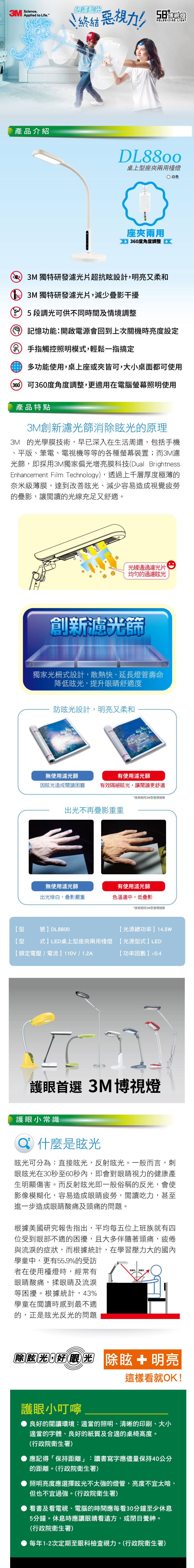 3M 58°博視燈 DL8800 LED桌上型夾座兩用檯燈