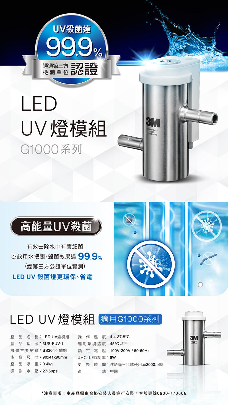 ◆LED UV模組屬耗材,建議於每三年或使用滿2000小時更換。