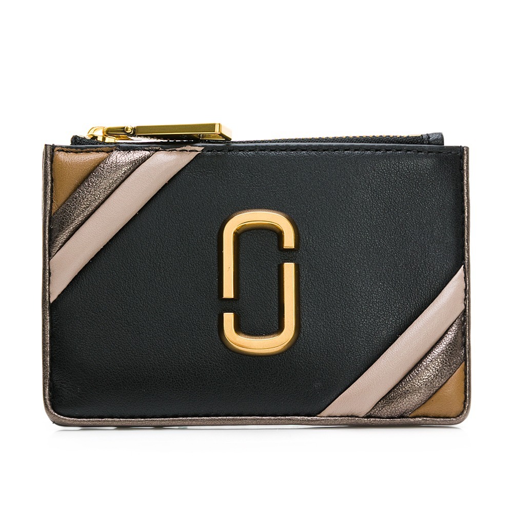 品名 : 【MARC JACOBS】 GLAM SHOT 邊角撞色 鑰匙圈拉鍊卡夾/卡套 [黑]