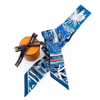 品名 : 【HERMES 愛馬仕】 HERMES Rayures dEte 假日風景 Twilly絲巾 [藍色]