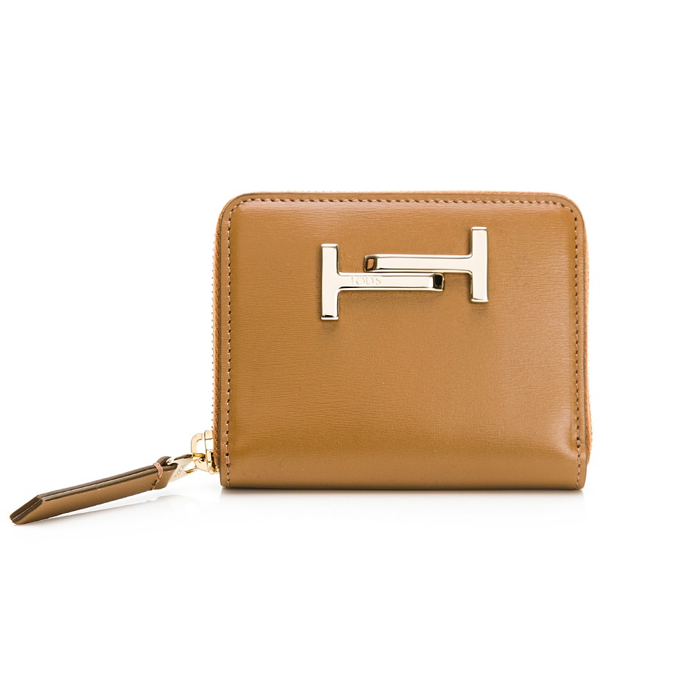 品名 : 【TODS】 TODS DoubleT金屬設計皮革拉鍊短夾 -咖啡色