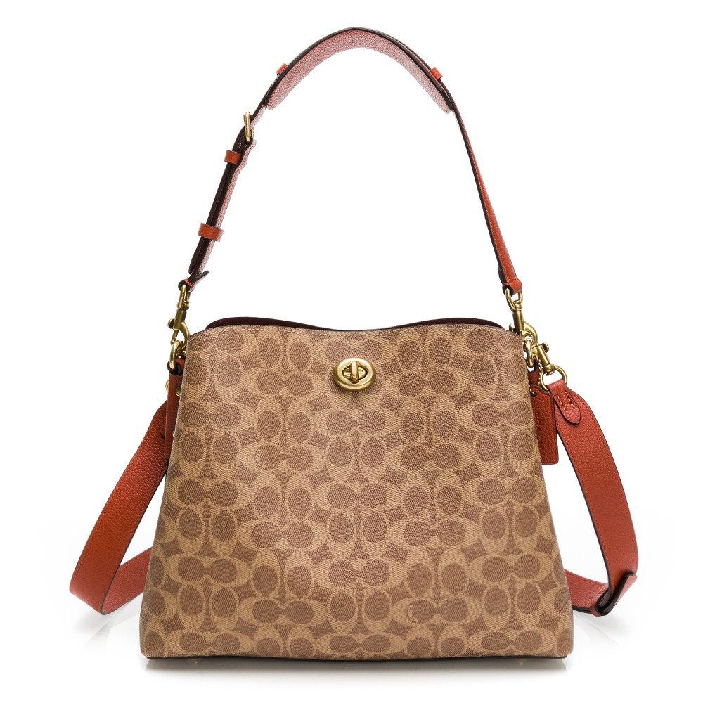 品名 : 【COACH 蔻馳】COACH WILLOW BUCKET經典SIGNATURE塗層帆布水桶包 (LOGO咖)