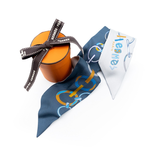 品名 : 【HERMES 愛馬仕】 HERMES Do Re Boucles 藍色底繩索 Twilly絲巾 [藍色]