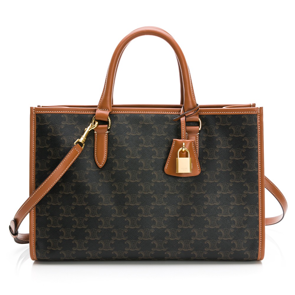 品名 : 【CELINE 思琳】CELINE TRIOMPHE帆布及小牛皮迷你型橫式CABAS手袋 (黃褐色)