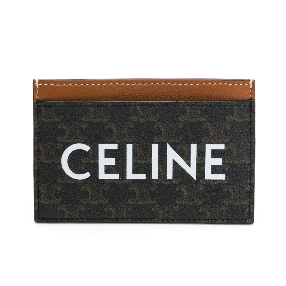 品名 : 【CELINE 思琳】CELINE 帆布皮革前白字卡套 (黑棕)