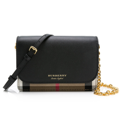 品名 : BURBERRY 巴寶莉 素面+格紋鍊帶吸釦式 小WOC