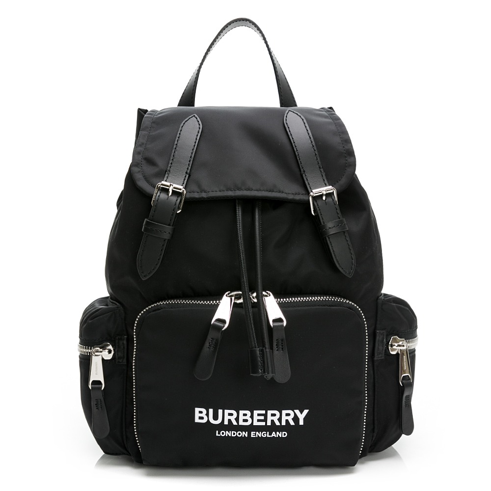 品名 : 【BURBERRY 巴寶莉】 BURBERRY 尼龍翻釦束口厚背包 (黑)