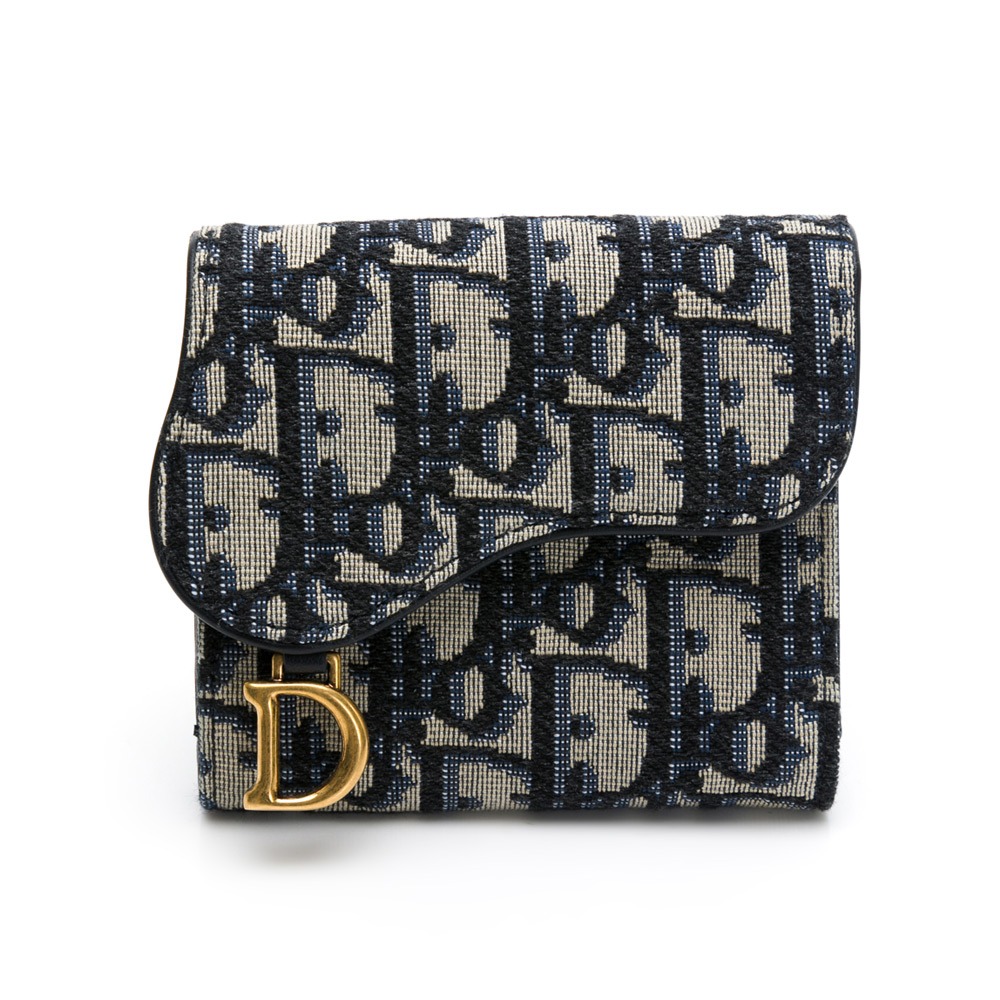 品名 : 【DIOR 迪奧】DIOR SADDLE LOTUS 馬鞍三折短夾 (深藍)