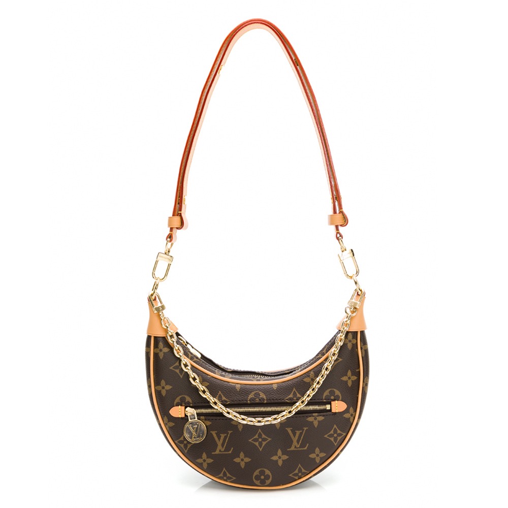 品名 : 【LOUIS VUITTON 路易威登】 LV 鍊帶彎月側背包 (棕色)