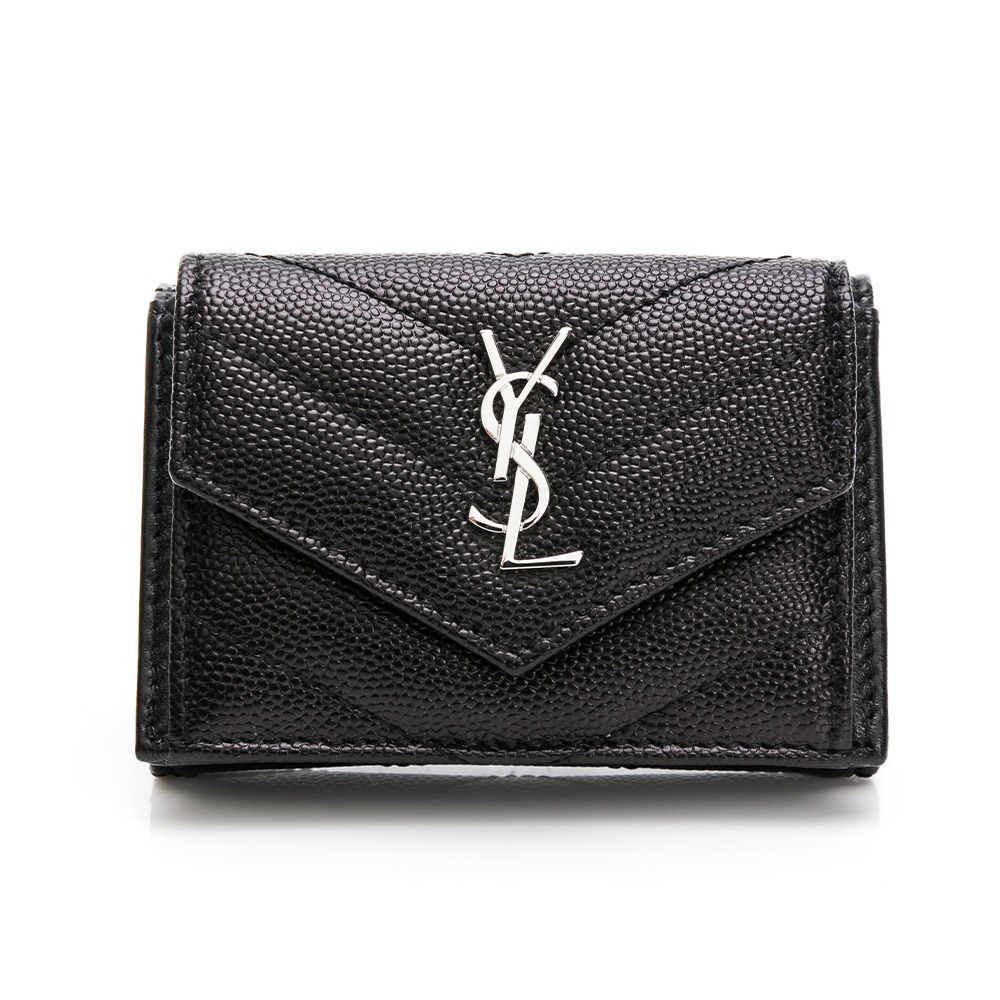 品名 : 【YSL 聖羅蘭】 YSL 迷你信封三折短夾 (黑銀)