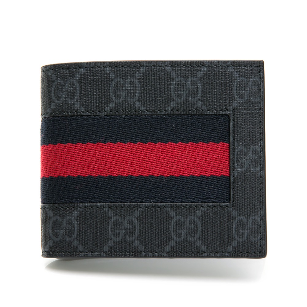 品名 : 【GUCCI 古馳】 GUCCI 老花織帶對開短夾 [深灰]