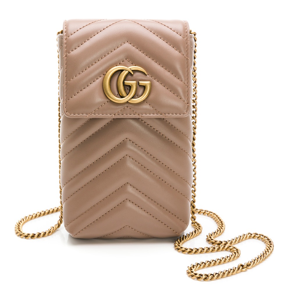 品名 : 【GUCCI 古馳】 GUCCI 馬夢皮革手機包 (裸粉)