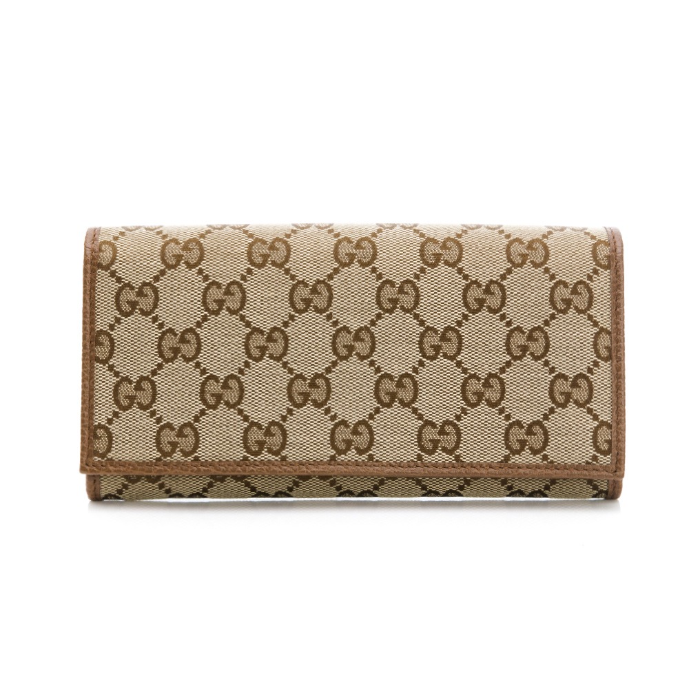 品名 : 【GUCCI 古馳】 GUCCI 淺花翻釦長夾 (咖)