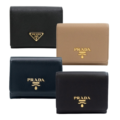 品名 : 【PRADA 普拉達】 PRADA 扣式三折短夾