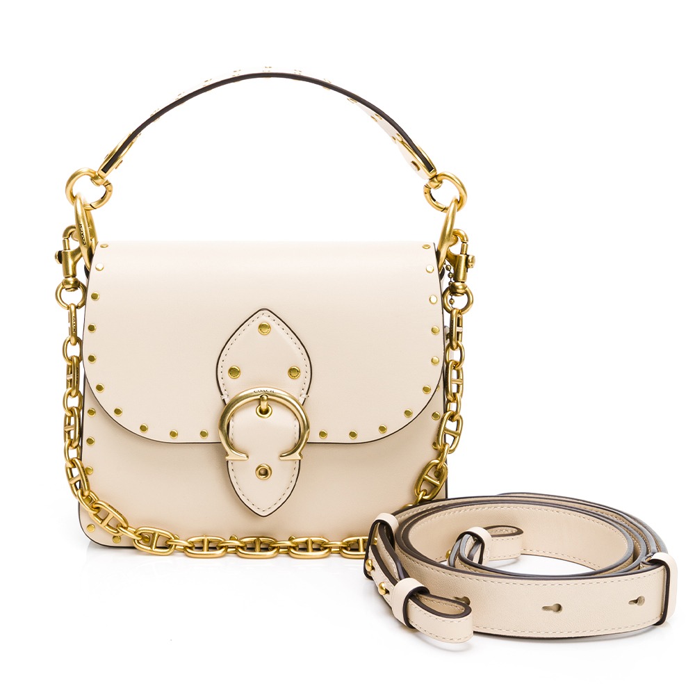 品名 : 【COACH 蔻馳】COACH BEAT 金屬環釦帶牛皮手提/斜背包(象牙白)