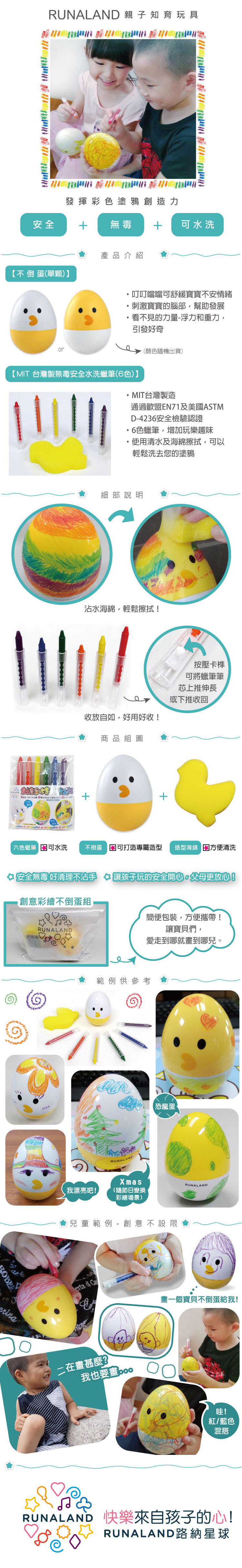 RUNALAND-創意彩繪不倒蛋組(不倒蛋+6色水洗蠟筆+海綿擦)