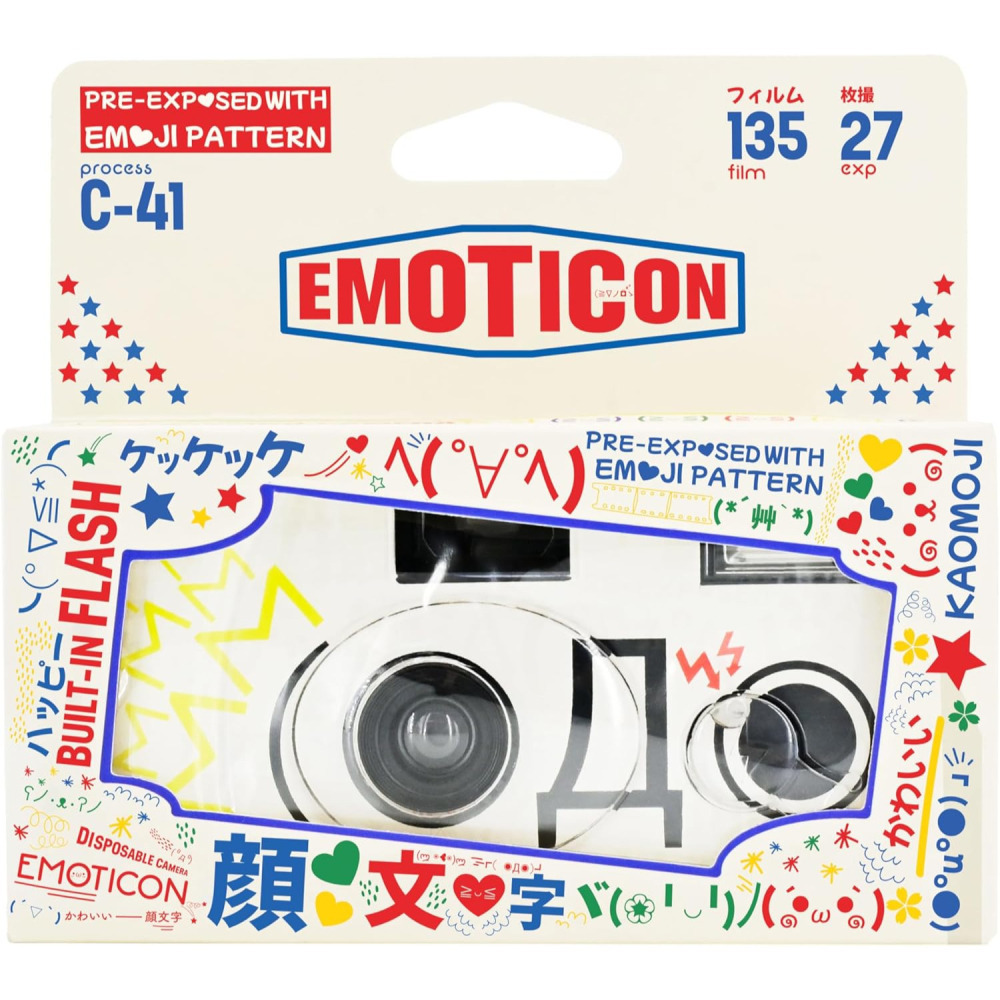 準備好迎接這個充滿趣味又好玩的夏天了嗎?這次為大家帶來了超萌的顏文字小可愛!這部一次性底片相機內含的ISO400的彩色負片已預先曝光色彩鮮豔的顏文字圖案,無論是歡樂舉手還是大拇指比心,每一個表情都可愛無比,充滿活力,特別適合夏日外出使用!