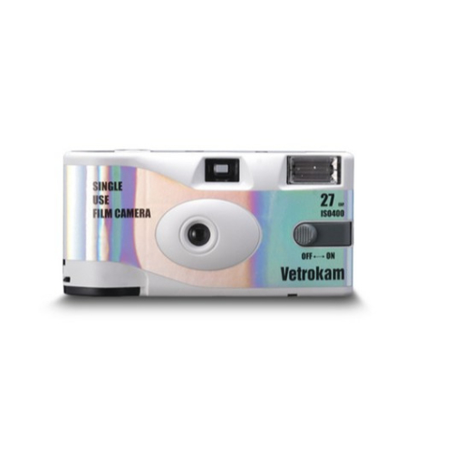 VETROKAM 自主研發的底片,並將其裝入一台簡易的一次性相機中。這卷底片色彩飽和度較高,尤其對黃色和橘色色調的呈現自然豐富。畫質偏暖,略帶紅色調。相機外部採用簡潔的雷射貼紙,向消費者傳達這款基礎相機能夠捕捉與貼紙上類似的豐富色彩層次。旨在以最簡單的方式吸引初學者,讓他們體驗並熟悉 VETROKAM。