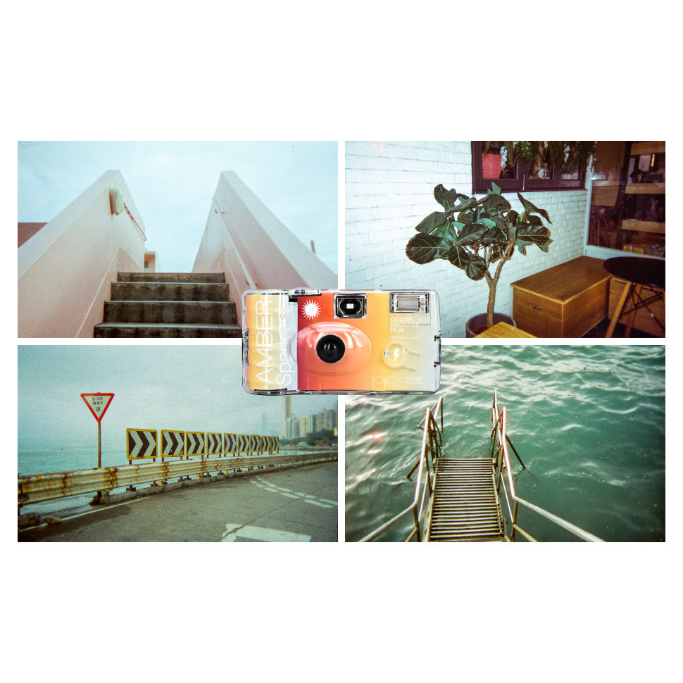 RETO Amber Spark 35mm 一次性膠卷相機,27 張,彩色負片,免調焦,易於使用,內建閃光燈,一次性使用(含膠片和電池)