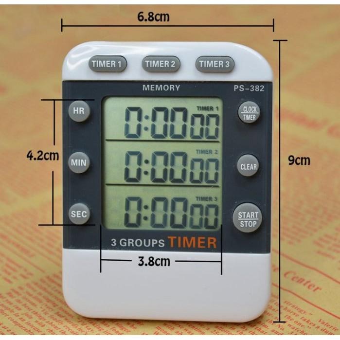 正貨382三通道電子正多組倒計時器定時提醒器時鐘秒錶記憶功能三排顯示/三通道倒計時器/具時鐘、秒錶、三組倒計時、記憶功能