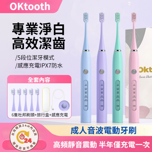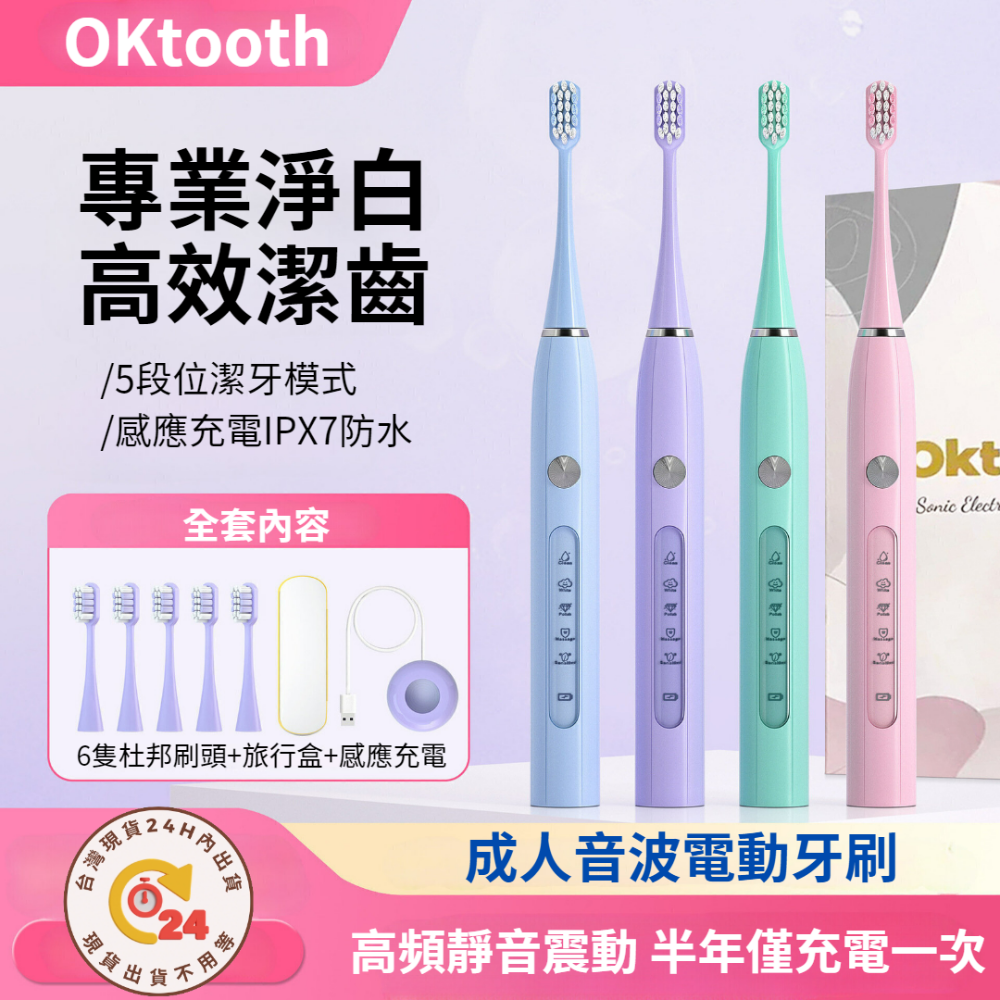 商品內容:牙刷主體+6隻刷頭+充電座一個+旅行盒1個