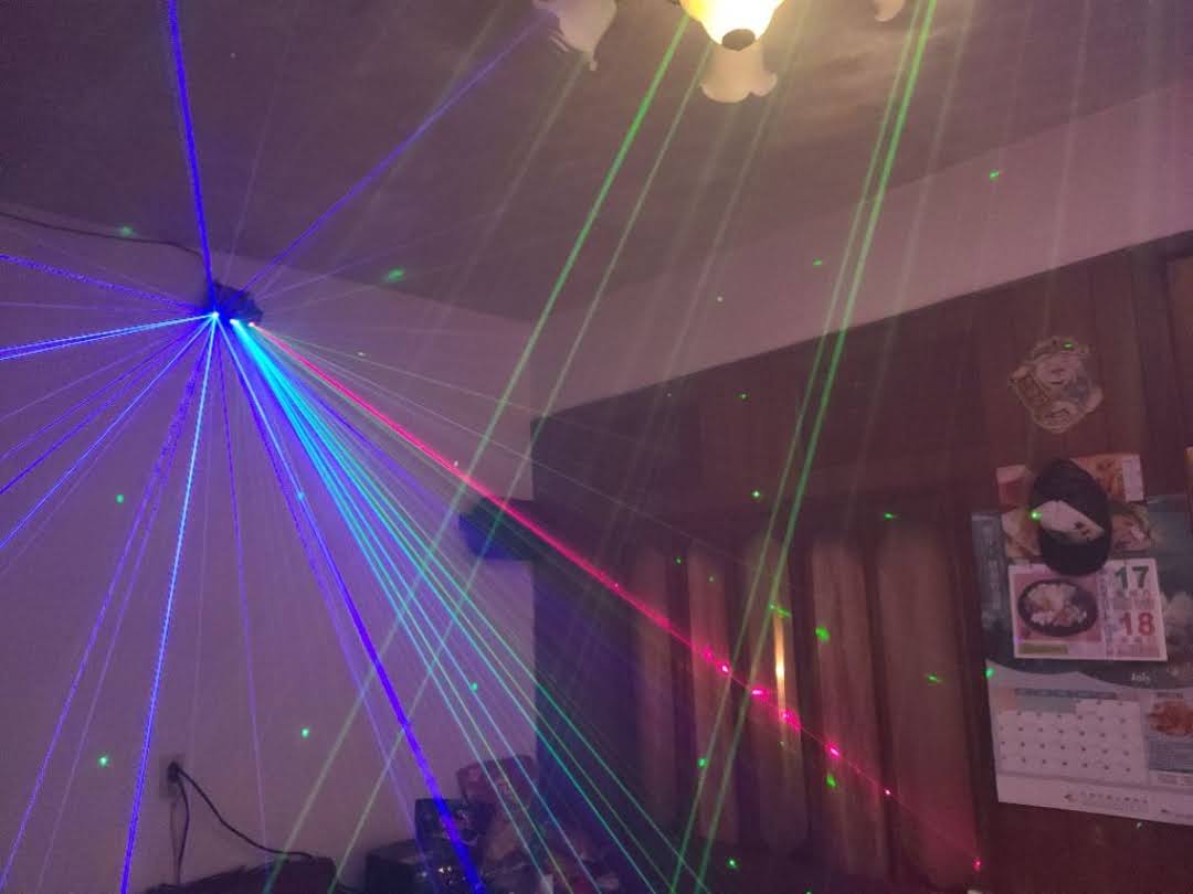 九孔投射(紅激光*2 + 綠激光*2 + 藍激光*2 + 白光爆閃*3)
