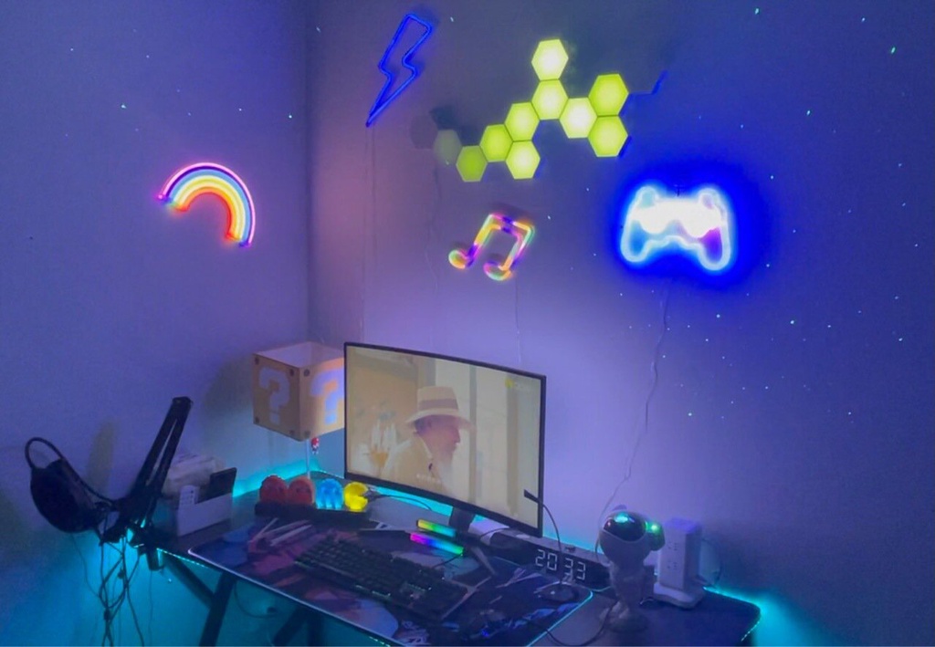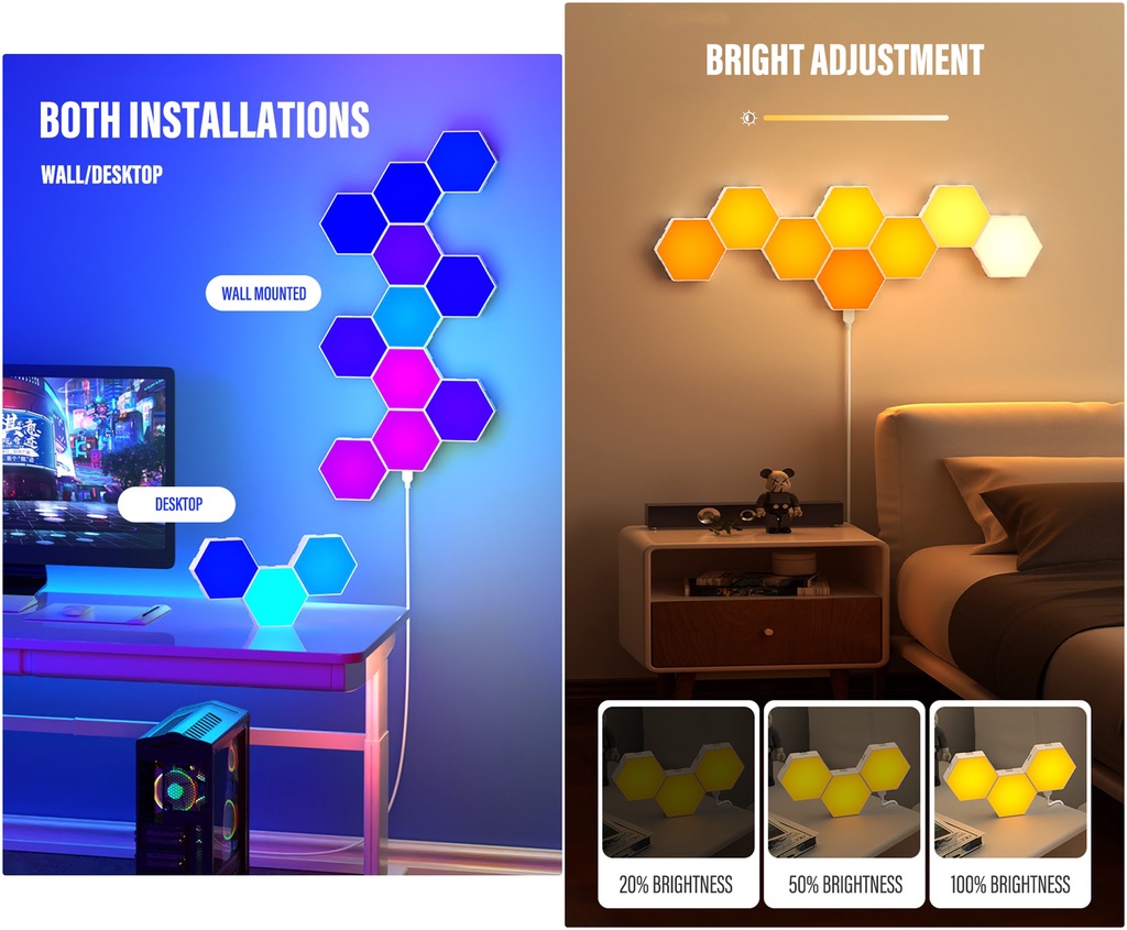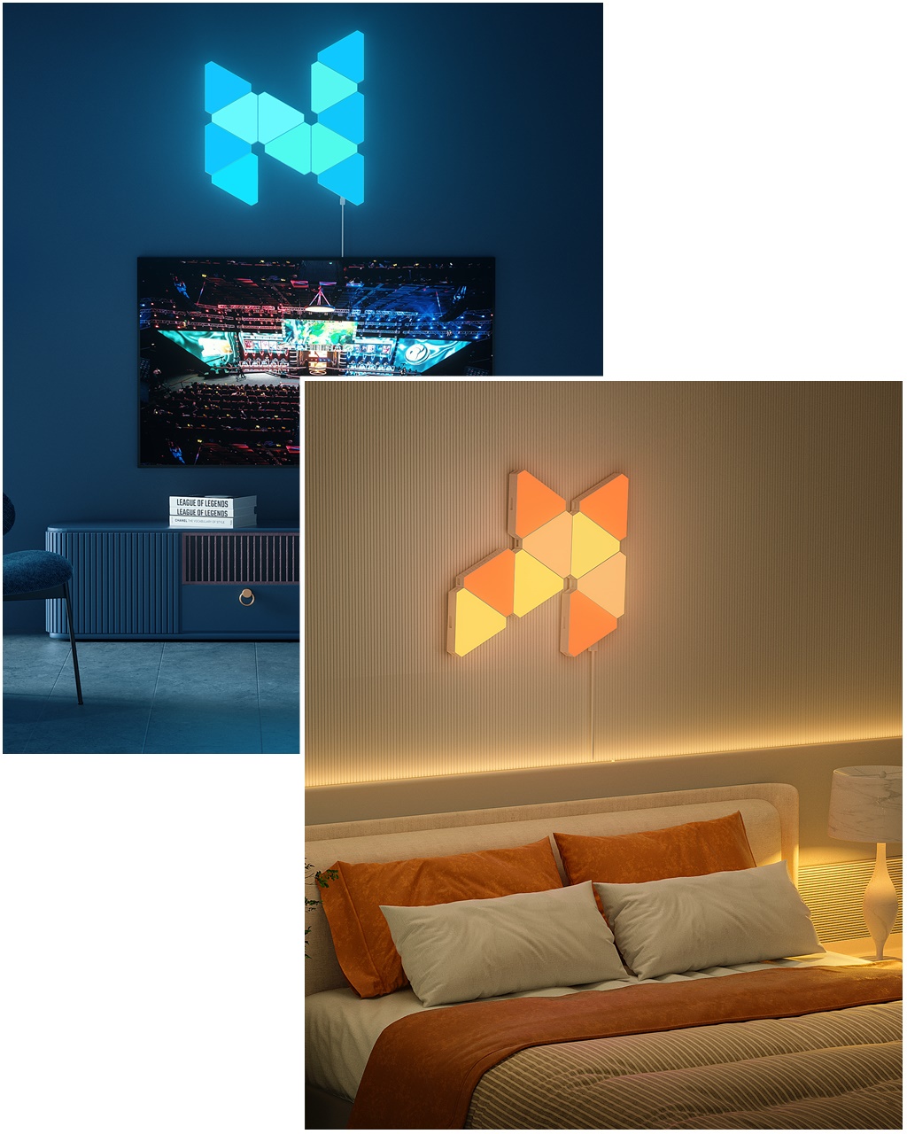 #智能燈 #三角燈 #六角燈 #蜂巢燈 #量子燈 #音樂律動 #遊戲房 #裝飾燈 #電競燈 #RGB氛圍燈 #壁燈 #幻彩燈 #七彩燈 #跑馬燈 #電競氛圍燈 #聲控燈 #奇光板 #背景牆 #拾音燈 #hexagon light #triangle light
