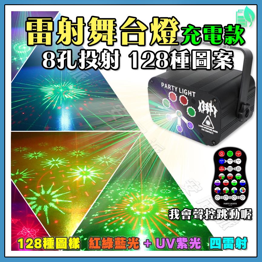 2024第三代《小型8孔雷射燈-充電款》 128種圖案變化 充電續航力6小時 LED廣角燈 雙色雷射光束 夜店 酒吧派對