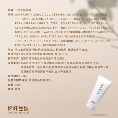 小柏青黛舒緩乳霜:針對銀屑所提供的有效舒緩,防止肌膚粗糙,預防肌膚乾燥,減少肌膚脫屑,舒緩肌膚不適感。