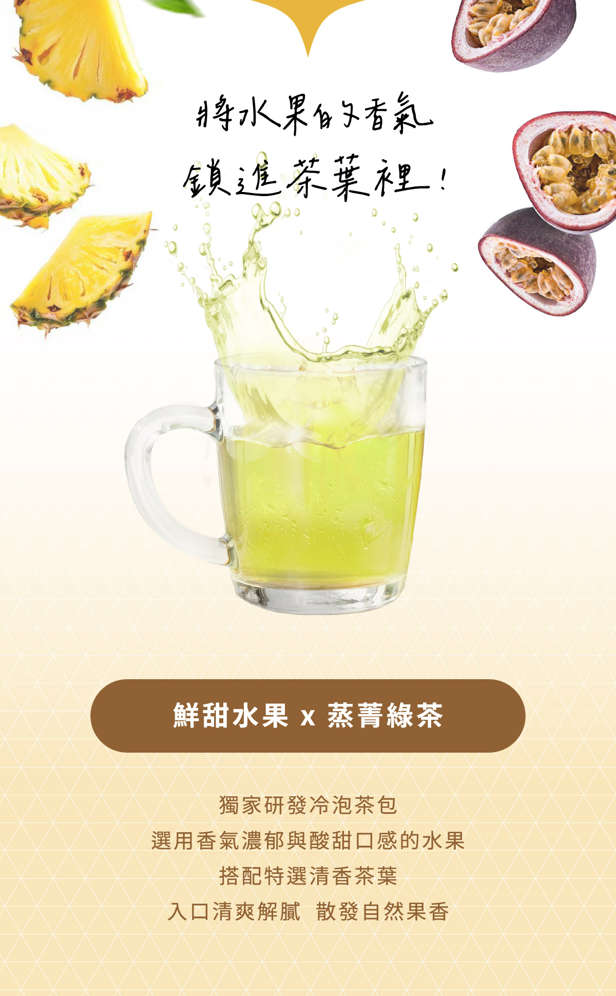 新鳳鳴 鳳梨/百香果風味冷泡茶包 水果香氣蒸菁綠茶 冷泡茶熱泡茶 快速沖泡 清爽零卡路里 不含糖飲料30分鐘快速釋放
