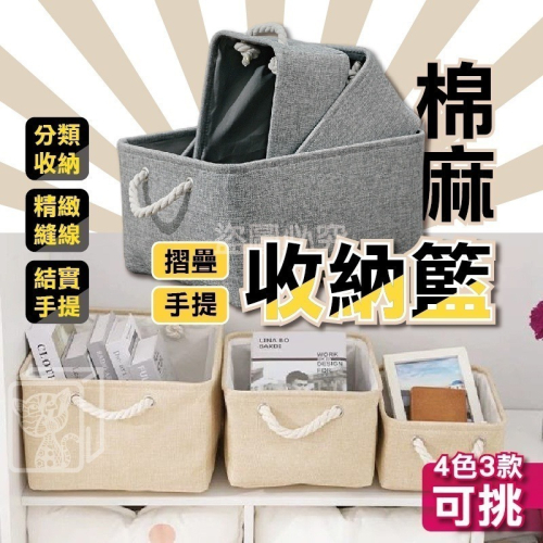 🔥多色多款🔥棉麻摺疊手提收納籃 布藝收納籃 儲物籃 置物籃 棉麻收納籃 折疊收納籃 布收納籃 摺疊收納籃 棉麻置物籃