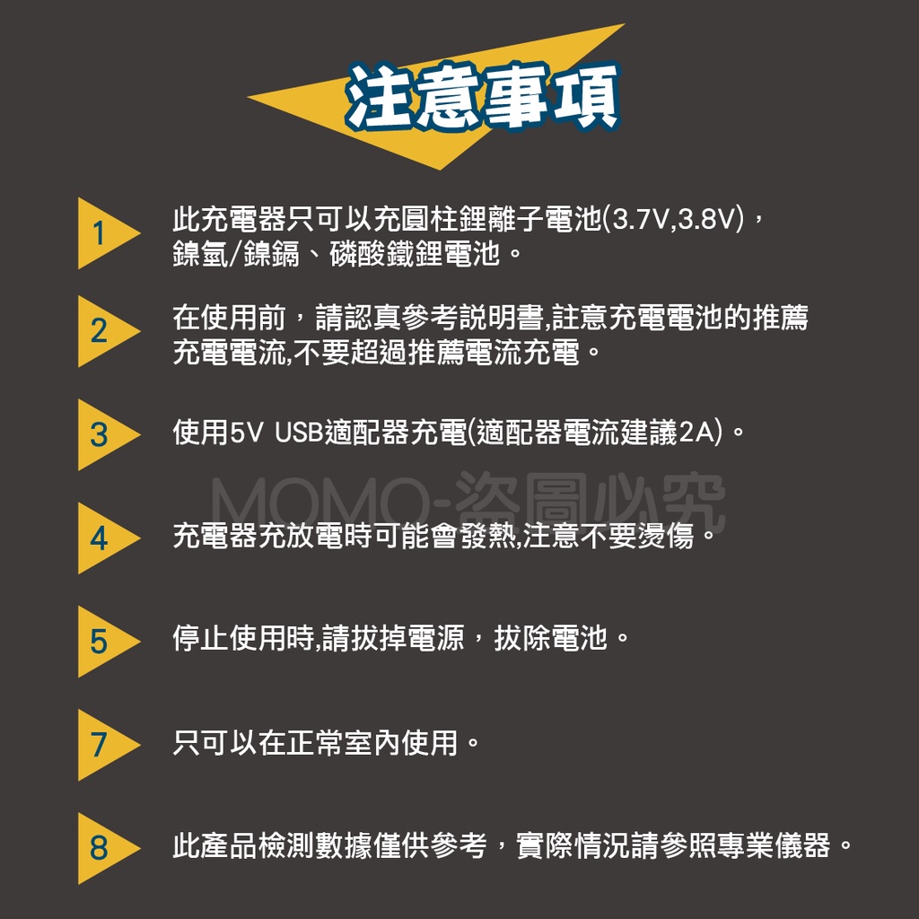 🔸此充電器只可以充圓柱鋰離子電池(3.7V,3.8V),鎳氫/鎳鎘、磷酸鐵鋰電池