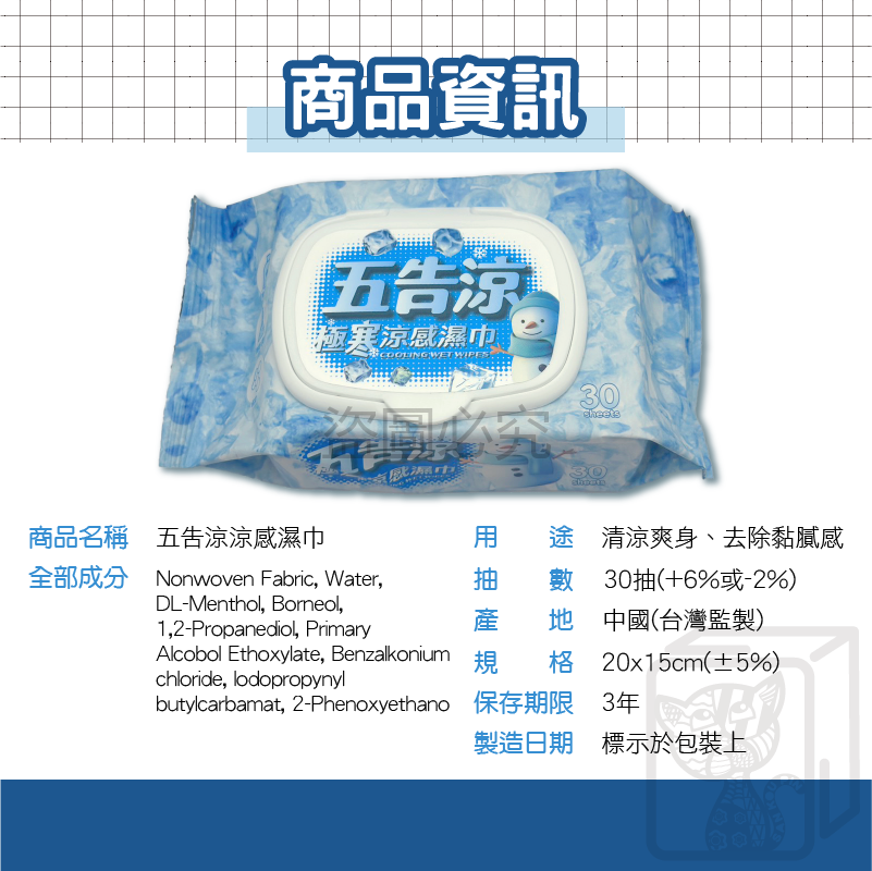• 【30抽】五告涼極寒涼感濕巾 【30抽】五告涼極寒涼感濕巾