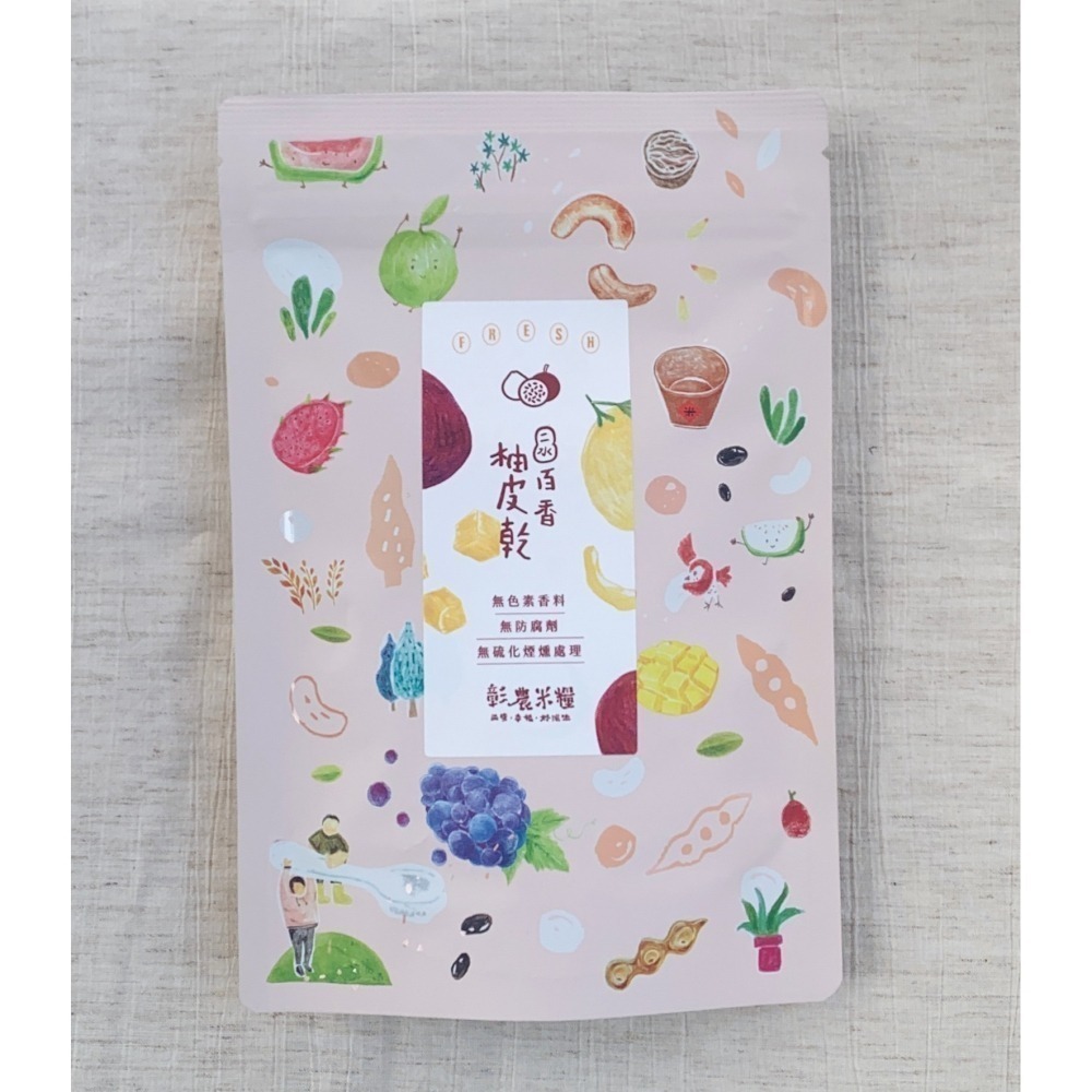 ●柚子皮中含有一種油苞的天然成分,在製作果乾的過程中,透過重複換水和汆煮過程,能去除油苞的苦澀辛辣味,但無法百分百的去除,所以,建議不要一大把丟進口中咀嚼,取一小塊含在口中慢慢品嚐柚子皮乾的果香,和百香果的熱情,感受在嘴裡綻放的多重奏滋味。