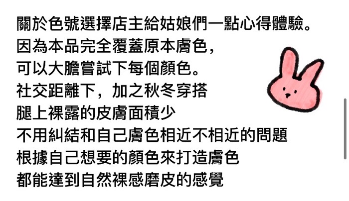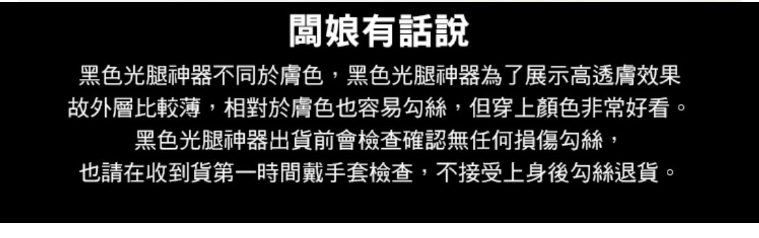 拉不上去、顏色不均、掉襠、有皺摺,請務必參考我們ig光腿神器的教學影片,有點耐心好好穿~~