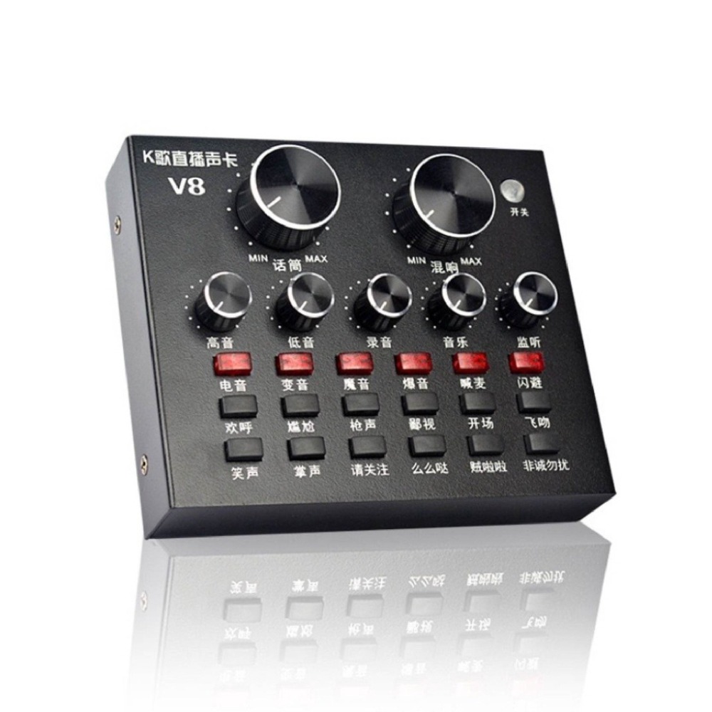 聲卡帶電,快沒電時,六種效果鍵的燈會閃爍,還請儘快充電,充電時間約2-3H,滿電後開關紅色指示燈會自動熄滅。