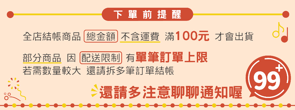 📦📦訂單商品 結帳金額(不含運費)滿100元以上就可出貨喔 (商品滿100元以上=可出貨)📦📦